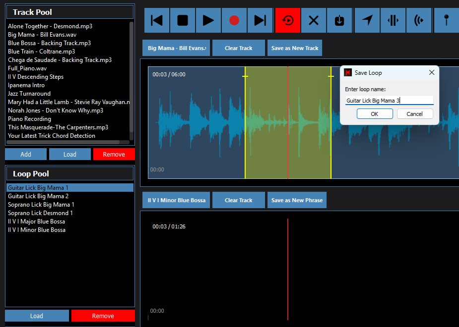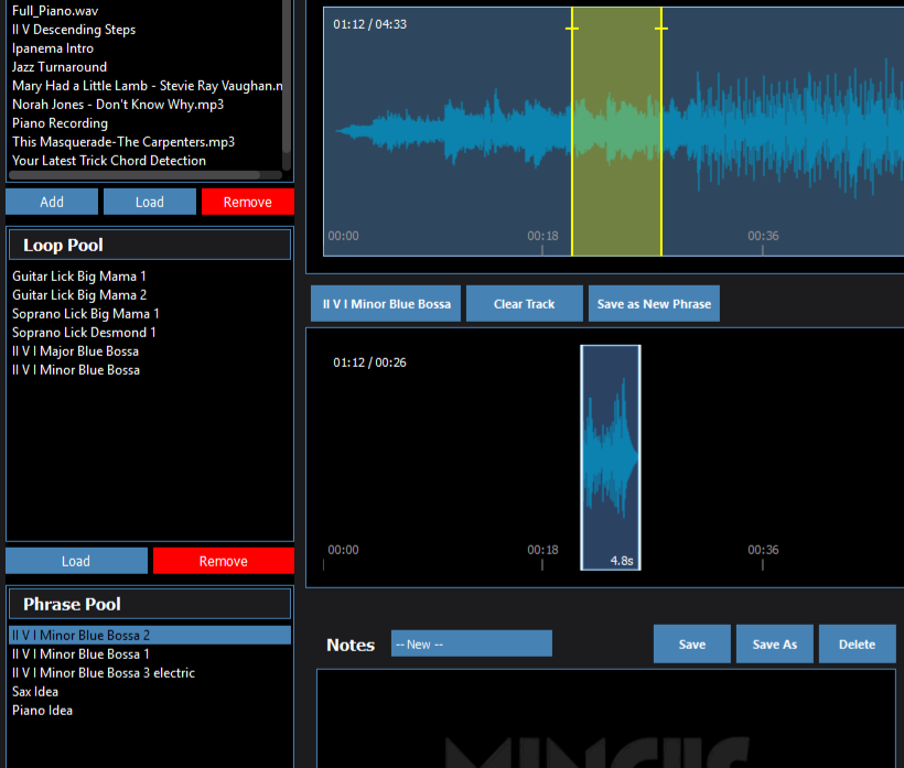 Record your ideas and build your improvisation vocabulary by saving your best phrases to the Phrase Pool.