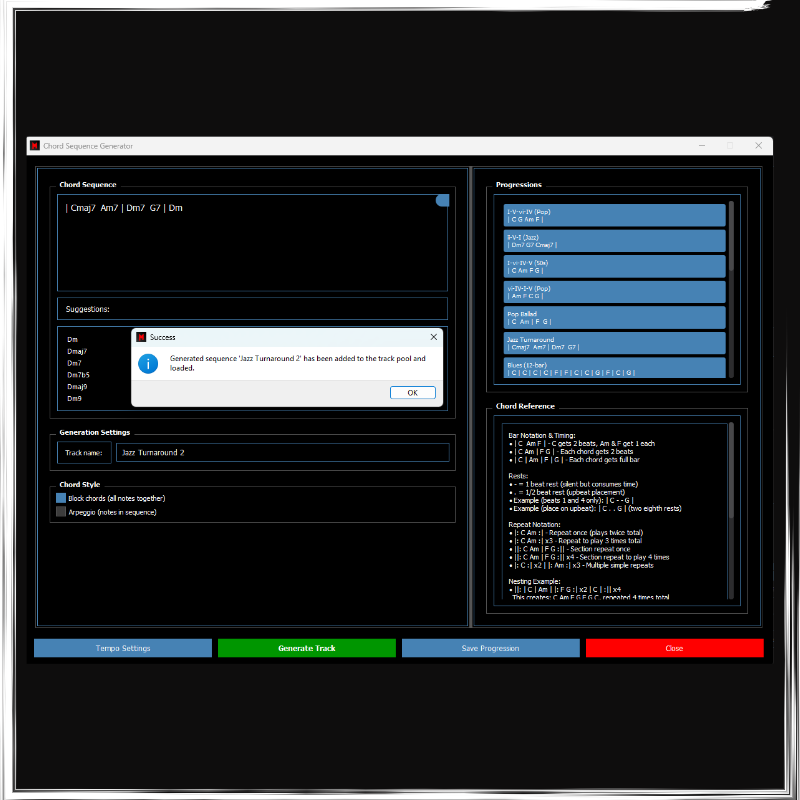 - Backing Track Generator (generate audio backing tracks in seconds to play along )