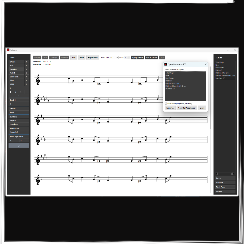 - Pattern and Lick transposer (an App to write patterns, licks or phrases and transpose them to 12 keys in one click, that is also a Score Writer and Pdf Book maker)