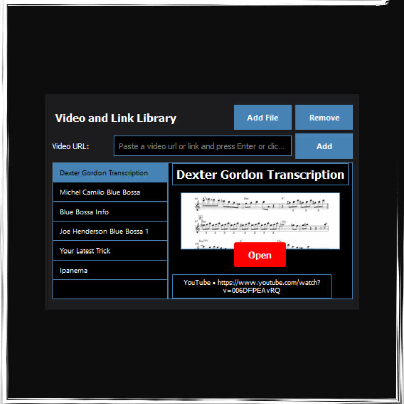 - Video and Links (a library of videos related to your project, such as youtube lessons, or song versions, and links with relevant info online)